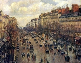 В 1889 году, после отказа от пуантилизма и возвращения к традиционной для импрессионистов манере, Писсарро, по примеру Моне, пишет виды Парижа при различном освещении, в разное время суток. Серия картин, изображавших бульвар Монмартр, стала одним из лучших достижений импрессионистов по передаче эффектов освещения и воздушной среды.