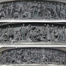 Композиция памятника по форме напоминает колокол. Высота монумента равняется 15,7 м, диаметр гранитного постамента – 9 м, высота скульптурных групп – 3,7 м, высота фриза на пьедестале – около 1,5 м, длина его – около 27 м, вес бронзового литья 65,5 т.