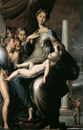 В 1523 году Пармиджанино решает покинуть свой родной город и направляется в Рим, там он изучает работы Микеланджело, Рафаэля и других, что бы усовершенствовать свои навыки живописи. Вместе с собой Франческо взял несколько своих работ, в том числе и автопортрет, нарисованный в виде зеркального отражения. Эта работа приглянулась папе Клименту VII, который был удивлен талантом юного живописца и хотел поручить ему работу над одной из фресок на стенах ватиканских залов. Но в 1527 году город был атакован войсками императора Карла V и разграблен. С риском для жизни Пармиджанино выехал из осажденного города в Болонью.