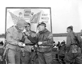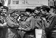 Многие месяцы они двигались навстречу друг другу с запада и с востока. И вот теперь вчерашние «заочные» соратники смогли пожать друг другу руки, обняться, поднять тост за Победу.