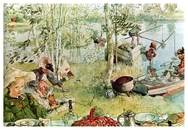 В 1888 году семья получила в подарок от родителей супруги маленький дом в окрестностях Сундборна, к северу от Стокгольма, и в 1901 году Ларссоны окончательно переселяются в него. Его идиллические полотна, акварели и рисунки изображают жизнь его семьи, в которой было 8 детей.
