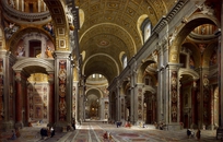 Джованни Паоло Панини – один из родоначальников архитектурного или руинного пейзажа. Свои архитектурные виды, интерьеры («Интерьер церкви Сан Джовани ин Латерано», Музей изобразительных искусств, Москва); руины («Руины», Эрмитаж, Санкт-Петербург и Музей изобразительных искусств, Москва) художник населял маленькими человеческими фигурками, обыгрывая излюбленную тему XVIII века – сопоставление величия древнего прошлого и тривиальности настоящего.