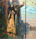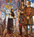 Особенно поражали всех, кто приходил в мастерскую к Павлу Корину, его знаменитые эскизы к картине «Уходящая Русь». Для картины он заготовил огромное полотно, но написать ее не успел. Последней его работой был триптих «Сполохи» – своеобразный исторический реквием русским воинам-победителям.