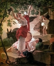 В 1822 году Карл Брюллов был откомандирован в Италию на средства Общества поощрения художников. Он посетил Дрезден, Мюнхен; обосновался в Риме – жанровые картины «Итальянское утро» (1823) и «Итальянский полдень» (1827). После копии с фрески Рафаэля «Афинская школа» Брюллов приступил к работе над большой картиной с историческим сюжетом – «Последний день Помпеи» (1827-1833), заказанной ему А.Н. Демидовым. В 1828 году произошло извержение Везувия. Брюллов был в Помпеях и сделал на месте ряд эскизов: пейзажа, руин, окаменелых фигур.