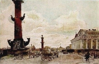 Его основными живописными работами являются пейзажи, архитектурные виды Петербурга, Версаля, Киева, Венеции и других городов.