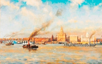 Его искусство военного периода – это прежде всего «документальный» и кропотливо точный характер работ Леонарда Тейлора. Например, картина с изображением кораблей в камуфляже в доках Ливерпуля, выполненная в точных деталях «Вид на пестро покрашенные корабли на реке Мерси около набережной Ливерпуля» (1918). На ней виден большой лайнер «Мавритания» на этапе посадки.