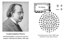 • исследование «катодных лучей» (электронных пучков), в результате которого было показано, что они имеют корпускулярную природу и состоят из отрицательно заряженных частиц субатомного размера. Эти исследования привели к открытию электрона (1897);