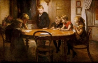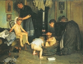 После возвращения из Парижа рисовал в более светлых тонах. Охотно прибегал к световым эффектам в своих картинах, написанных в более тёмном цвете, например, в замечательной работе «Светлое Рождество» (1891) – одного из самых волшебных его полотен. Здесь на фоне темных силуэтов людей и теней в углах комнаты еще ярче и контрастней смотрится елка, сверкающая праздничными огнями. Это центр композиции, который выделен с помощью и цвета, и света. Блики от огней освещают завороженные детские лица, что создает волшебную атмосферу уютного семейного праздника.