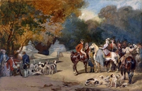 Произведения английского художника, представителя романтизма Р.П. Бонингтона побудили Эжена Лами заниматься акварелью, в которой он достиг выдающихся результатов. Темы его произведений – придворная и светская жизнь эпохи Реставрации, Луи Филиппа и Второй империи, а также спорт. После поездок в Англию в 1826 и 1848-52 годов художник, по словам А. де Мюссе, стал играть роль «поэта официального дендизма».