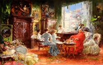 Основными темами его живописи были жанровые сцены из салонной жизни высшего света, портреты, пейзажи. Как правило, это были небольшие по формату картины, но очень насыщенные цветом, прописанными деталями, отличные от других художников особенной манерой письма.