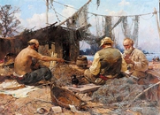 Во период I-й мировой войны обратился к военной тематике. До времен великих перемен (октябрьские события 1917 года, Гражданская война) много и плодовито работал, регулярно участвуя, иногда с большим числом картин, на многочисленных выставках, занимал высокие места и часто поощрялся премиями.