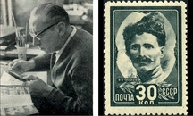 Он является автором первого советского почтового блока в ознаменование Всесоюзной Пушкинской выставки в Москве.