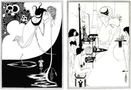 Как художник, Бёрдслей первоначально испытывал влияние У. Морриса и Берн-Джонса. Важным стало изучение японских гравюр, с их гармонией линии и пятна. Глубокое проникновение в традиции японского искусства позволило ему создать удивительный синтез Запада и Востока в собственных рисунках. Мастерски виртуозная линия Бёрдслея, играющая с черными и белыми пятнами силуэтов, буквально в год-два сделала его всемирно известным художником.