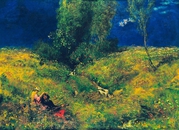 Промежуточное положение между двумя этими тенденциями в творчестве художника занимают картины, изображающие идиллические сценки из танцующих и поющих детей, задумчивых крестьян. Эти работы на рубеже XIX-ХХ столетий принесли ему славу «второго Людвига Рихтера».