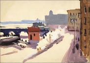 «В большинстве своём пейзажисты ленинградской школы постоянно писали вид из окна своей мастерской… так появились серии…А.С. Ведерникова». Лучшая часть творческого наследия художника – лиричные пейзажи Ленинграда, часто написанные из окна его дома на Малом проспекте Васильевского острова.