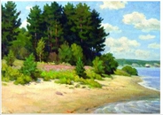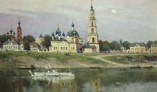 И все-таки любовь к пейзажной живописи – к картине – осталась у художника навсегда. Каждое лето его ждала Волга, а этюдник для работы и лодка стали неизменными инструментами художественного освоения реки. Калязин, Углич, Мышкин, Плёс, деревни на волжских берегах и сами эти берега – все становится объектом пристального внимания художника. Эта тема – тема Реки – осталась для него важнейшей в многолетнем творчестве.