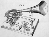 В 1887 году Берлинер запатентовал новое устройство – граммофон, а в 1895 году основал «Berliner Gramophone» – первую компанию, занимавшуюся продажей граммофонных записей. Через 2 года им был открыт филиал в Великобритании – «Gramophone Company» (в настоящее время «EMI» – одна из крупнейших звукозаписывающих компаний мира), а ещё через год – в Германии («Deutsche Grammophon»).