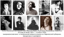 1879 года родилась Алла Александровна НАЗИМОВА /наст. имя – Аделаида Яковлевна Левентон/ (в Ялте, Таврическая губерния), российская и американская кино- и театральная актриса, продюсер и сценарист.