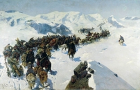 После окончания академии Франц Рубо начал создавать серию картин о жизни народов Кавказа и истории их присоединения к России. В 1880-1890 годах появились его этюды «В горах Кавказа», «Всадник» и 18 больших батальных картин для Тифлисского военно-исторического музея, которые сделали художника известным не только в России, но и в Европе.